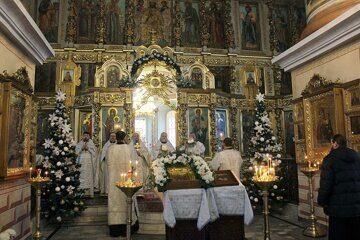Сегодня утром, 25 января 2022 года, Божественная литургия и молебен святой великомученице Татиане совершались в Свято-Успенском соборе Трифонова монастыря.