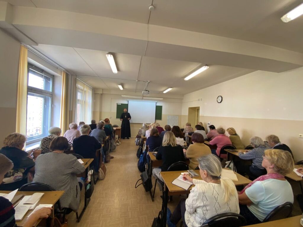 Первое занятие провел отец Алексей Шишкин, настоятель храма «Скоропослушница», специалист по взаимодействию с образовательными организациями Центра подготовки церковных специалистов (Вятское Духовное училище). Встреча была посвящена сложной теме о догматах Православной церкви. Слушатели задавали вопросы, порассуждали вместе с лектором и ждут новой встречи с отцом Алексеем.