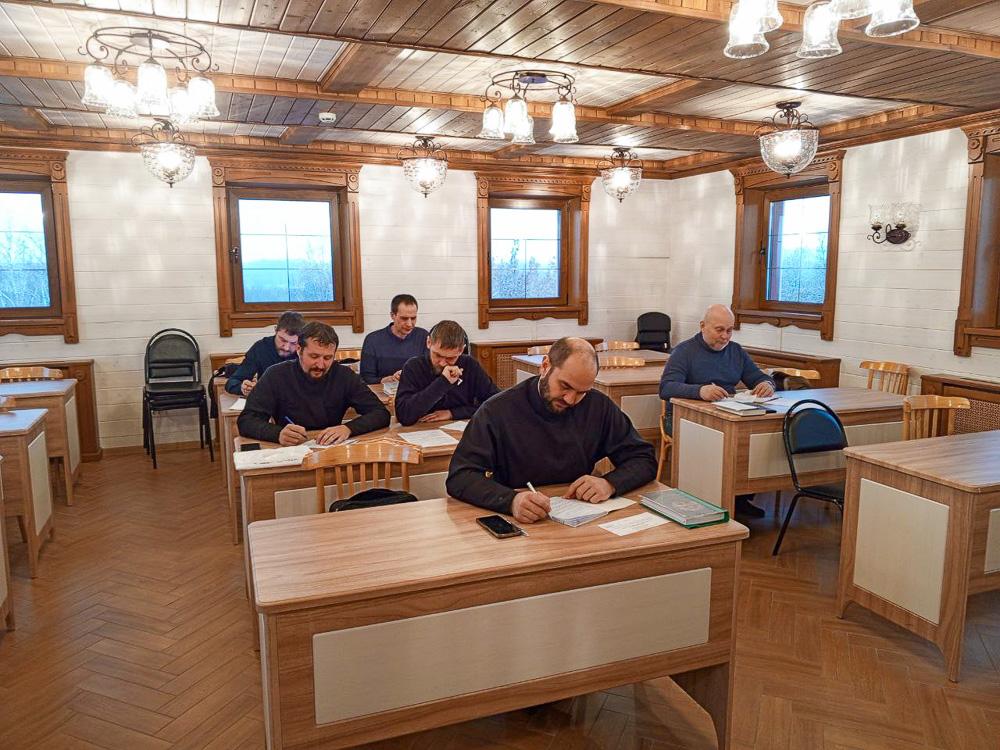 Сессия началась с Божественной литургии в Успенском кафедральном соборе Свято-Трифонова мужского монастыря. По сложившейся традиции в начале сессии состоялась встреча с духовником Центра подготовки церковных специалистов «Вятское Духовное училище» иеромонахом Ермогеном (Ядыкиным), на которой у студентов была возможность поразмышлять о насущных вопросах духовного становления и получить пастырское благословение на учебные труды.